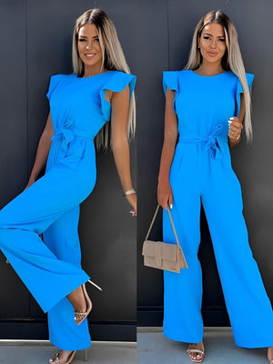 The Veronica Ruffle Belt Jumpsuit is a stylish and comfortable piece of clothing that effortlessly combines modern design with a touch of playfulness. With its eye-catching, ruffled, flared sleeves, it creates a distinctive silhouette. The loose fit ensures comfort and elegance, making it suitable for various occasions. An elegant belt accentuates the waist and gives the silhouette a flattering shape. Made from high-quality materials, the Veronica Jumpsuit is suitable for both everyday wear and more formal occasions. It is an outstanding piece where fashion and comfort meet with finesse and style.